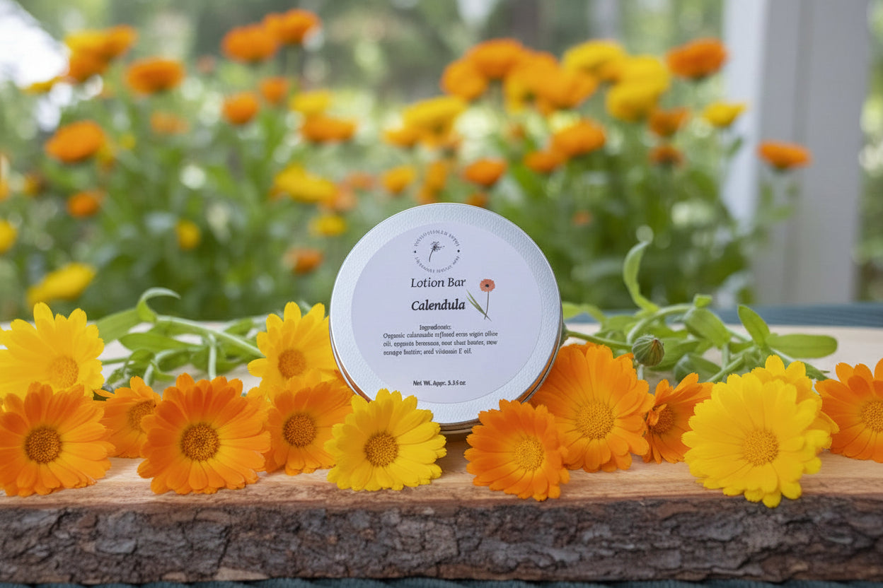Protect and nourish your skin with our handcrafted Lotion Bars. Made with organic calendula-infused extra virgin olive oil, raw shea butter, raw mango butter, vitamin E oil, and organic yellow beeswax, these bars deeply moisturize, soften, and soothe dry skin while helping to lock in moisture and support your skin against everyday environmental stressors.